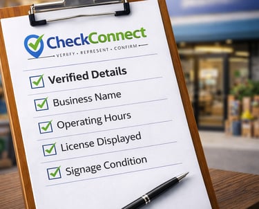 Suppliers going quiet? Need to confirm a business is legitimate before you proceed? CheckConnect attend in person, follow up professionally, and send you a clear written summary with supporting photos — so you can make decisions with confidence.